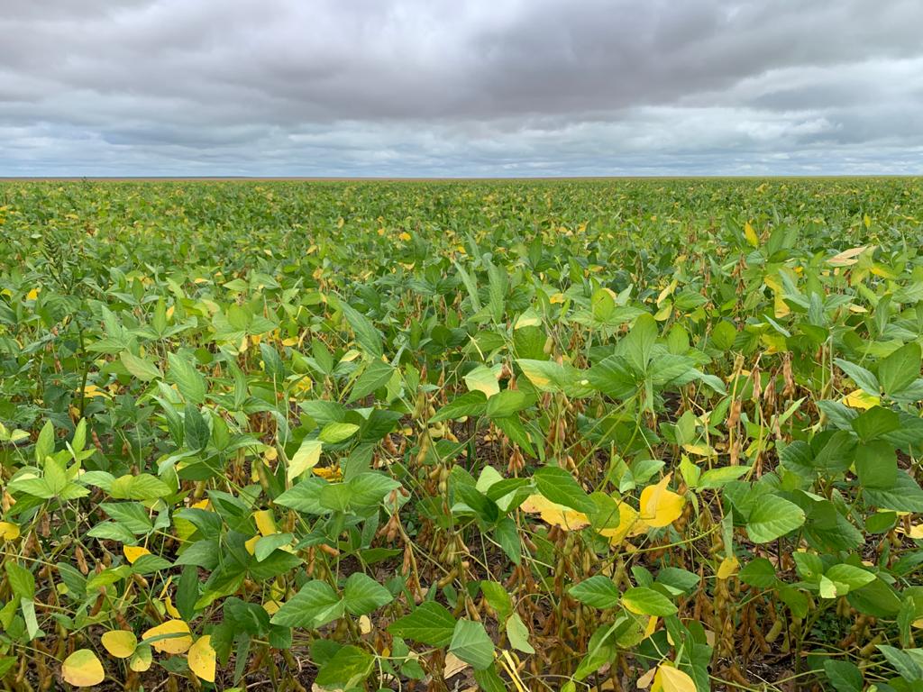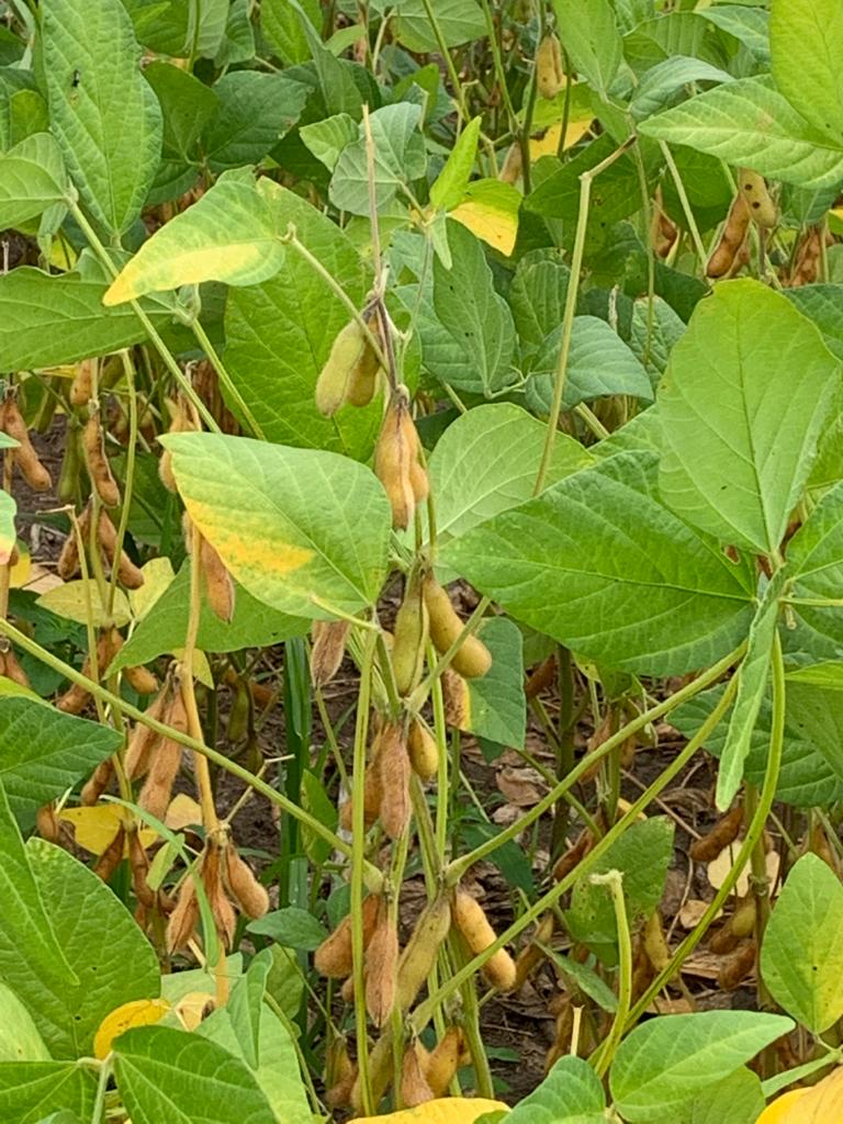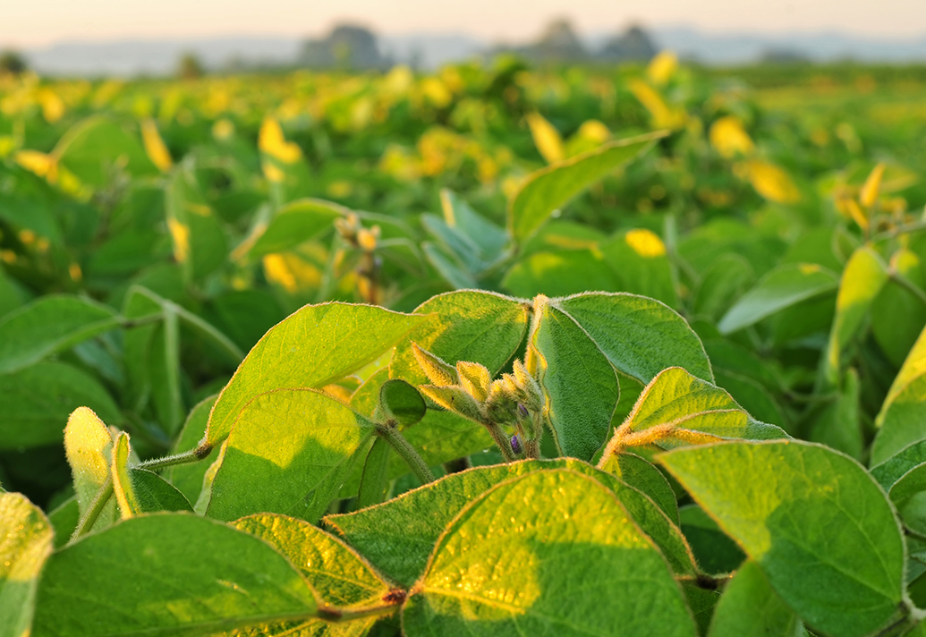 Close up of soybean plant in warm early morning light