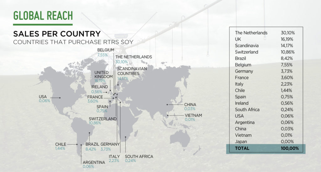 With more than 3 Million ton of responsible soy production, Brazil is the main exporter, followed by Argentina, Paraguay, China, India and Uruguay.